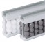 Pearl™ Roller Side Guide - 2 Side 1 High. 58.25 Inches Length. Anodized Aluminum Structure, Rollers in Polyethylene Material Brown In Color, Frame and Pins in Acetal (POM) Material. Use 5/16 Inch or M8 Bolts